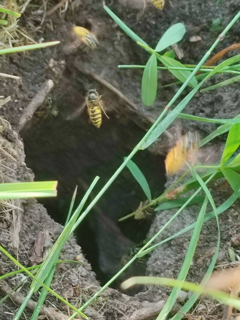 Beim Mähen des Grases wurde auch ein in der Erde gebautes Wespennest entdeckt.